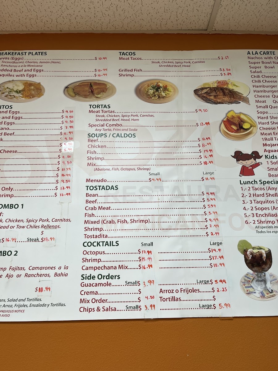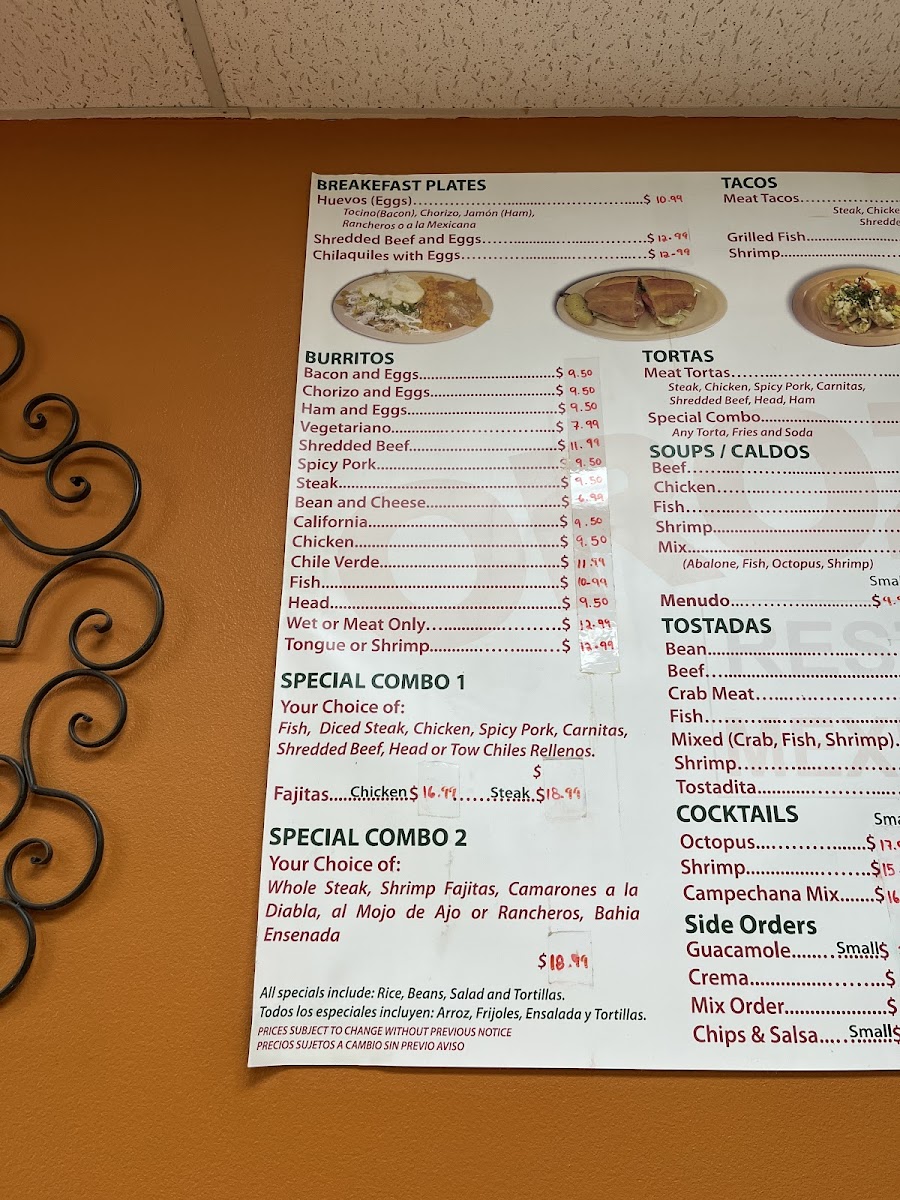 For those seeking something more substantial, the Burritos-from Bacon And Eggs and Chorizo And Eggs to Ham And Eggs Vegetariano and Shredded Beef-provide satisfying, flavor-packed options, while the Tacos selection featuring Meat Tacos, Grilled Fish, and Shrimp highlights both land and seafood choices. Tortas like Meat Tortas and Special Combo add another layer of variety, complementing the rich Soups/Caldos such as Beef, Chicken, Fish Shrimp, and Mix.